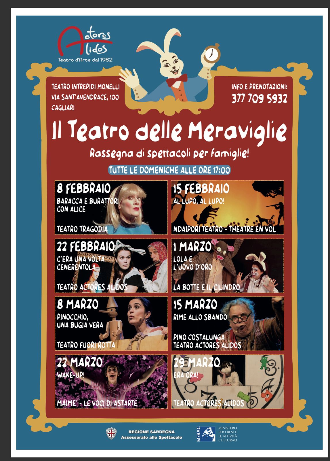 Dal 8 febbraio al 29 marzo, ogni domenica alle ore 17:00, lo spazio Intrepidi Monelli di Cagliari (Viale Sant’Avendrace 100) ospita “Il Teatro delle Meraviglie”, la rassegna teatrale per l’infanzia e le famiglie organizzata da Teatro Actores Alidos.